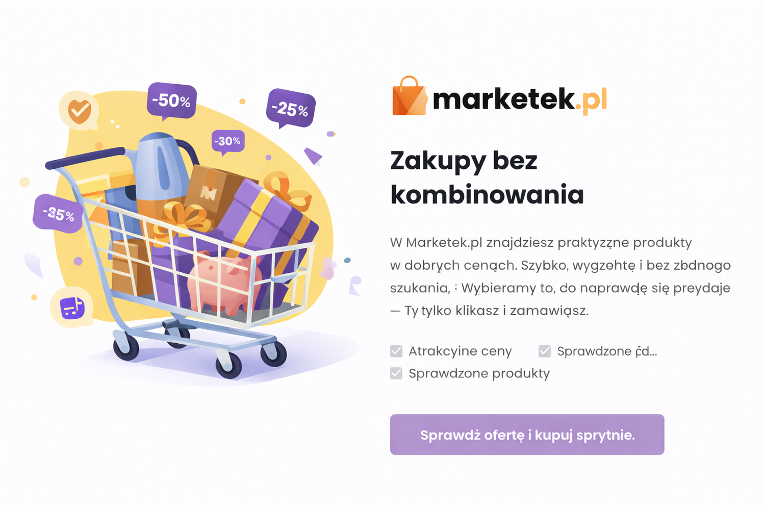 W Marketek.pl znajdziesz praktyczne produkty w dobrych cenach. Szybko, wygodnie i bez zbędnego szukania. Wybieramy to, co naprawdę się przydaje — Ty tylko klikasz i zamawiasz.